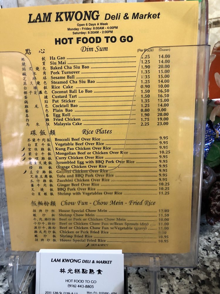 Welcome to Lam Kwong Market, a hidden gem in downtown Sacramento that specializes in delightful dim sum and a variety of hot foods. This charming corner market boasts a cozy atmosphere, making it perfect for a quick meal or a casual gathering with friends and family. With outdoor seating and ample room for groups, Lam Kwong is designed for comfort and accessibility, welcoming everyone from families to four-legged friends.
